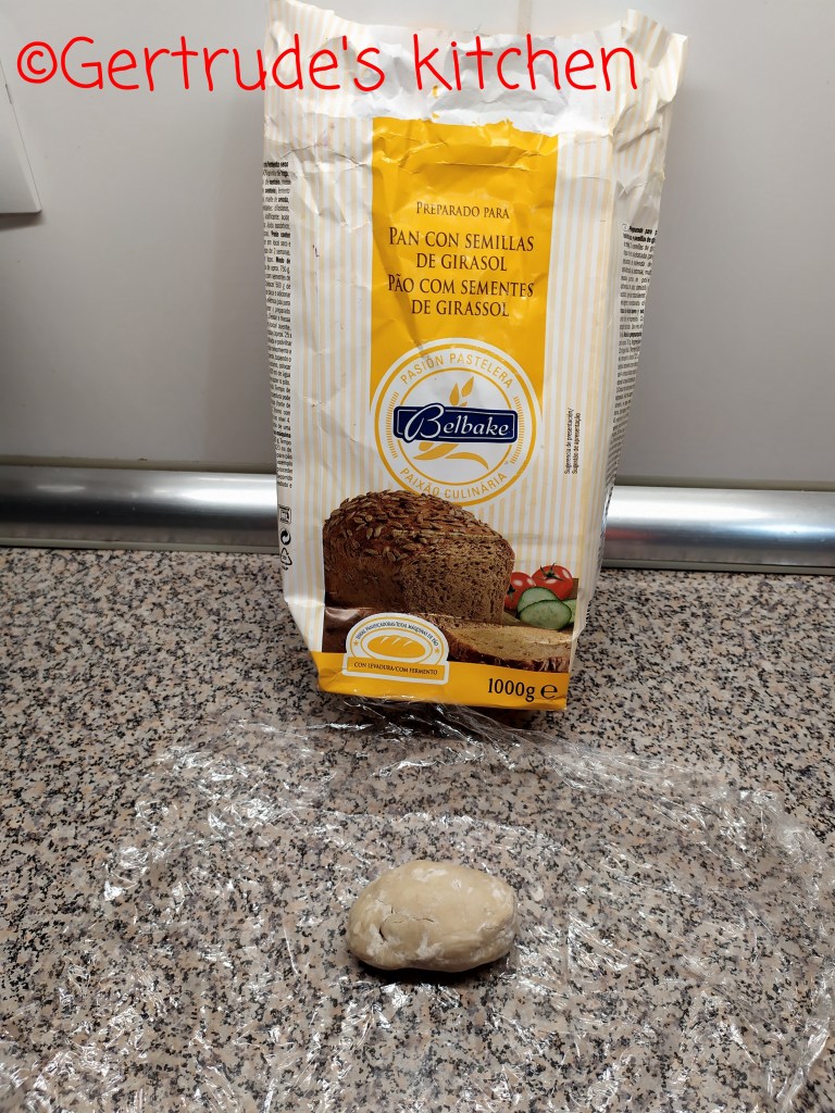 Se amesteca făina cu sarea iar drojdia și aluatul se dizolvă în apă călduță. Apoi se, amestecă cele două împreună într-un vas, cu o lingură sau chiar cu mâna. Se pregătește un alt vas suficient de încăpător pentru a oferi spațiu pentru dospire și se unge bine cu ulei. Se toarnă masa formată în acest vas și se acoperă cu o peliculă alimentară. Se lasă la dospit 20 de minute.