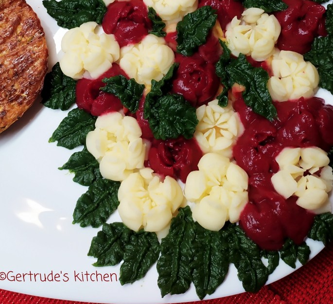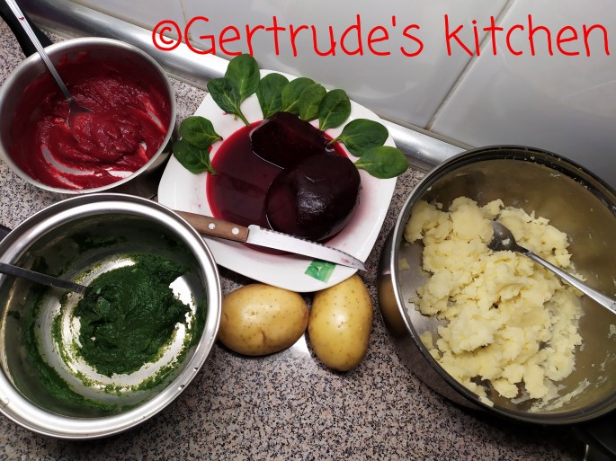 Se face un piure din 5 cartofi mari. Se mixează cu 2 lg ulei și puțină sare.