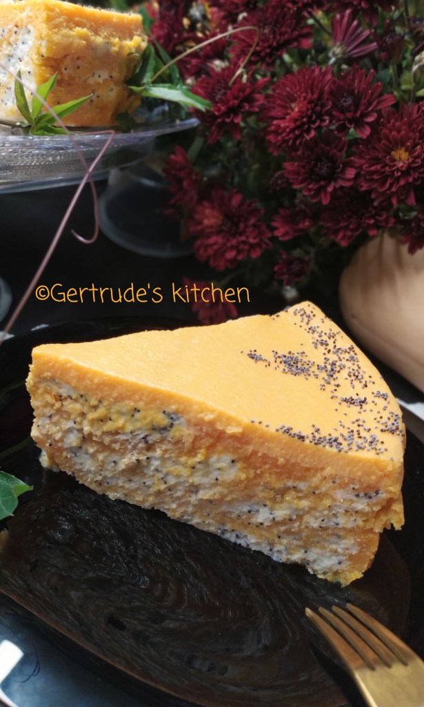 Astăzi am ales sa va prezint o rețetă de CHEESECAKE cu dovleac și mac, fără bază de blat sau biscuiți.