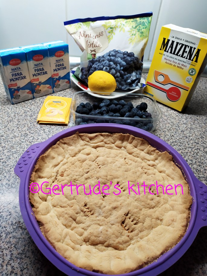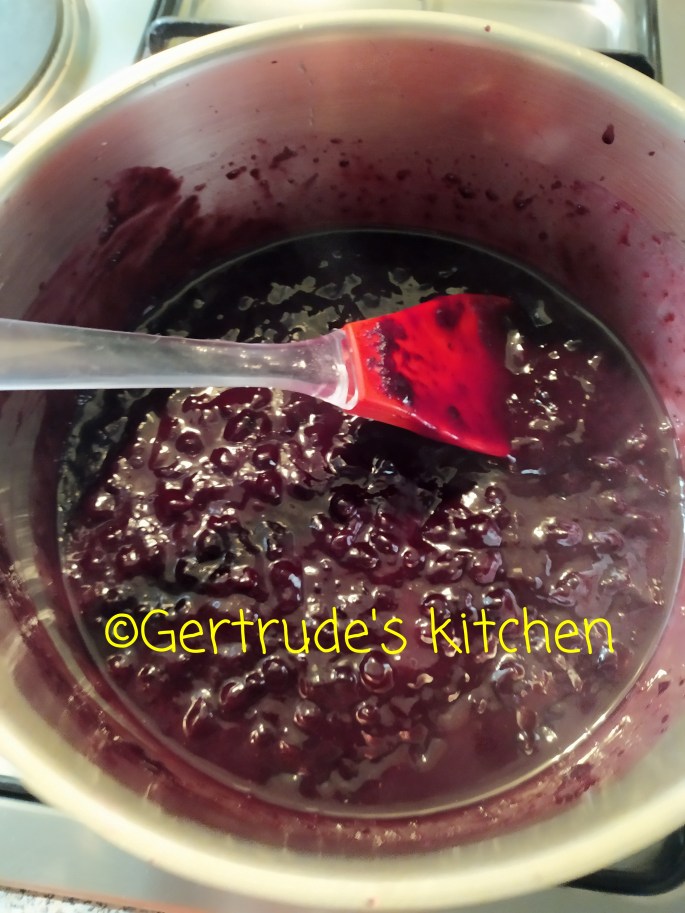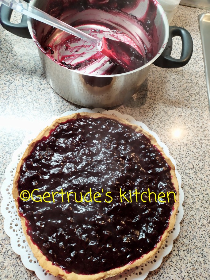 Pt gelatină, se pun afinele într-o cratiță cu zahărul și zahărul vanilat și se fierb 10 minute. Se adaugă sucul de lămâie, sarea și amidonul dizolvat în apă rece și se mai fierbe 2-3 minute până se îngroașă. Se amestecă continuu. Se toarnă peste blatul de biscuit și se lasă la răcit.