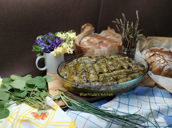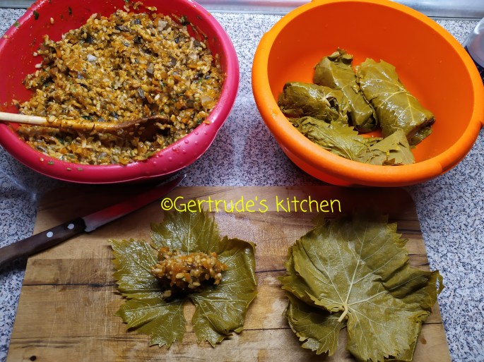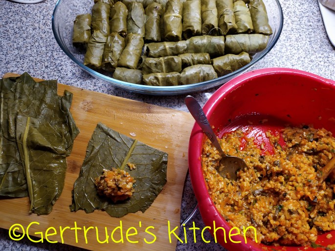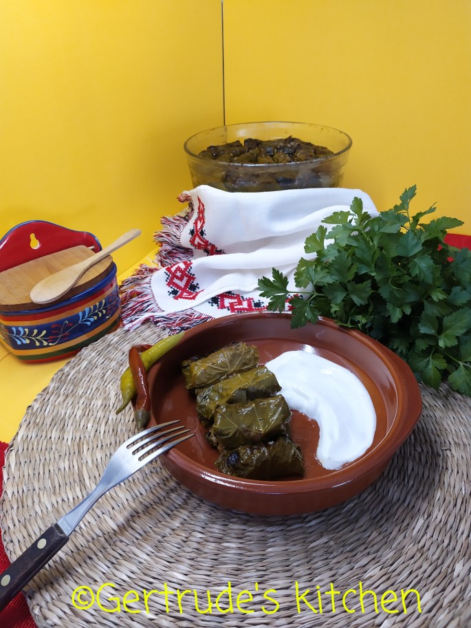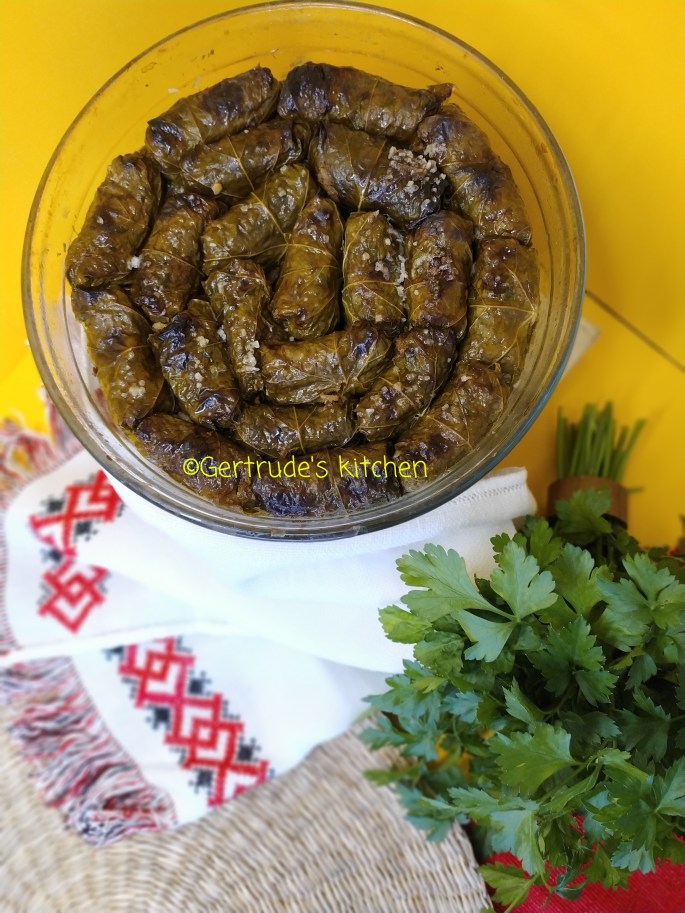 Se pun într-un vas de jena cu apa în care s-au opărit frunzele și ulei. Se pun la cuptor pentru 20 minute.