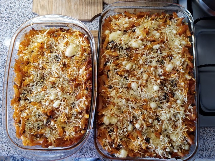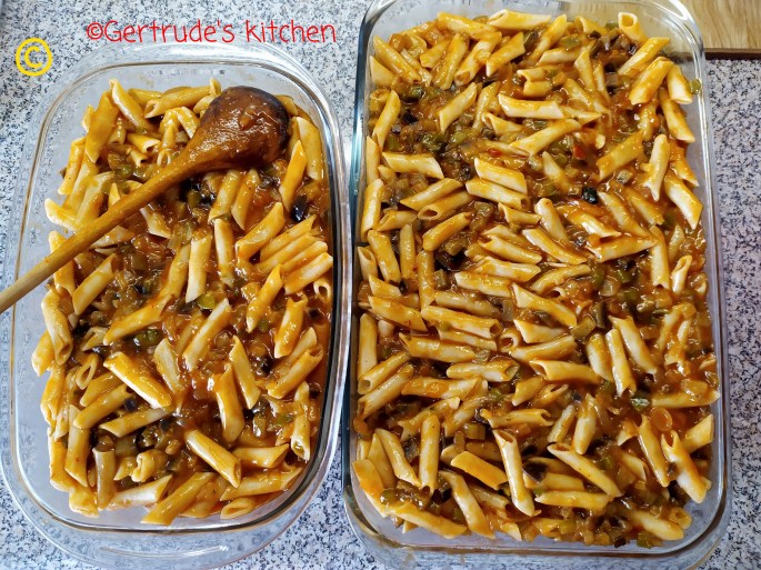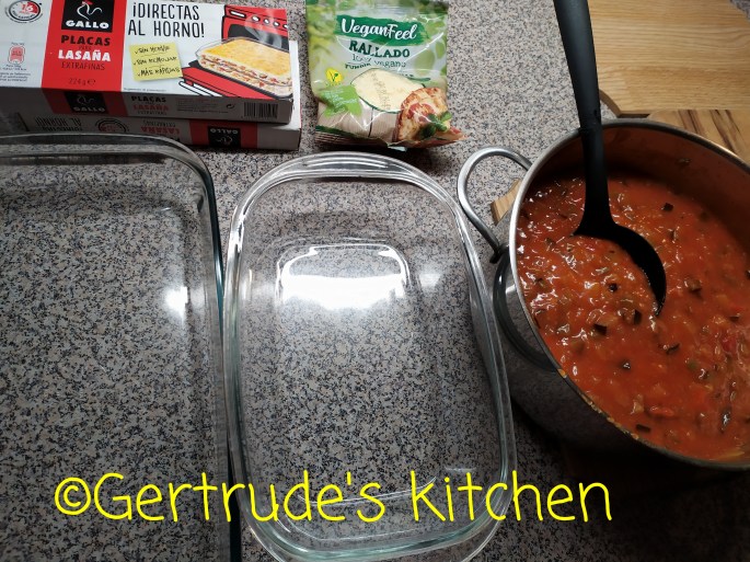…. Iar atunci când lipsește timpul material pentru a pregăti o Lasaña, sau nu ai in casa tăblițele de paste, se poate amesteca sosul pregătit cu macaroane fierte „al dente”, puse în vase de jena, și date la cuptor până capătă o ușoară crustă. Apoi se scoate se pune brânză vegană deasupra și se mai dă la cuptor încă 5 minute pentru gratinare.