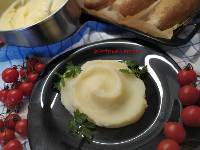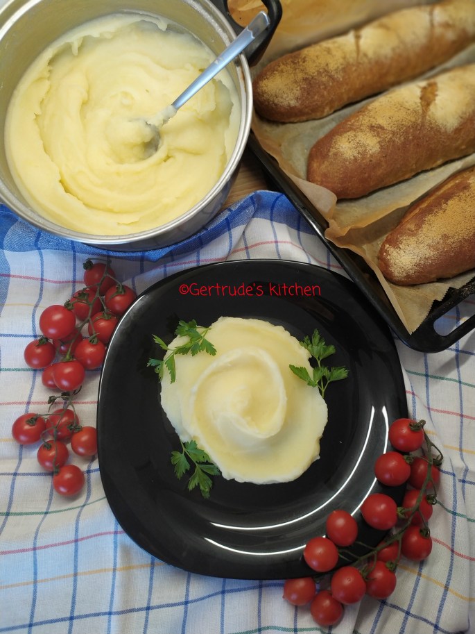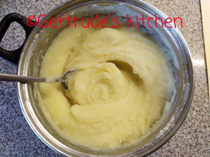 Se zdrobesc cartofii cu un zdrobitor manual. Niciodată cu mixerul, pentru că acesta îi va face o pastă lipicioasă!!