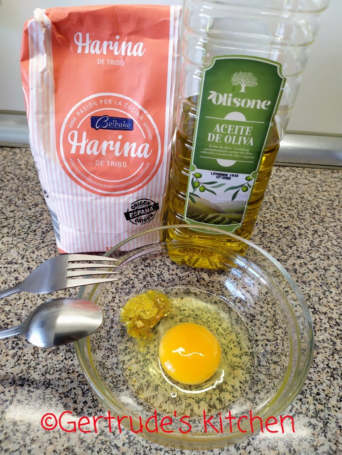 Se amestecă bine oul cu sarea și uleiul, după care se adaugă și făina.