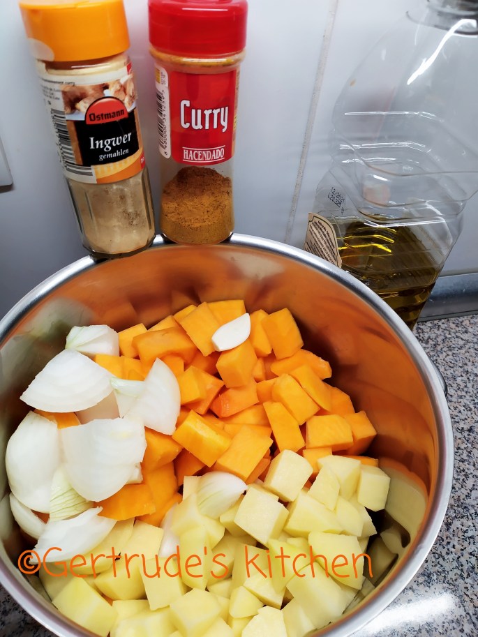 Când sunt fierte, se blendează cu blenderul vertical bine și se adaugă curry și ghimbir. Se mai dă un clocot.