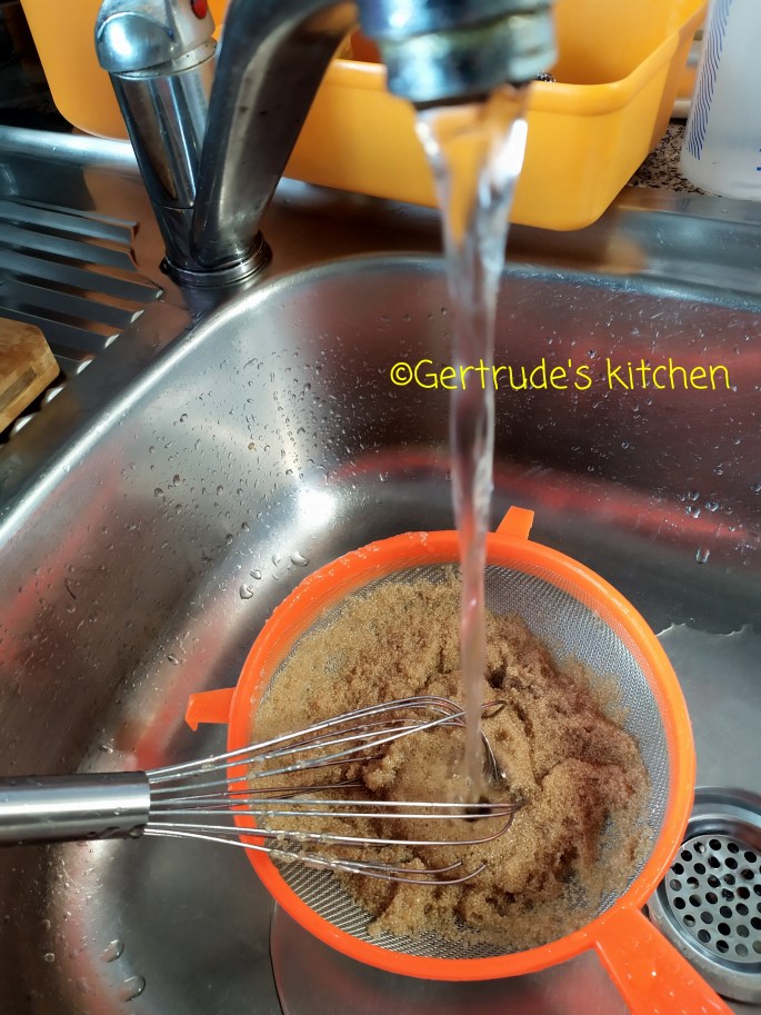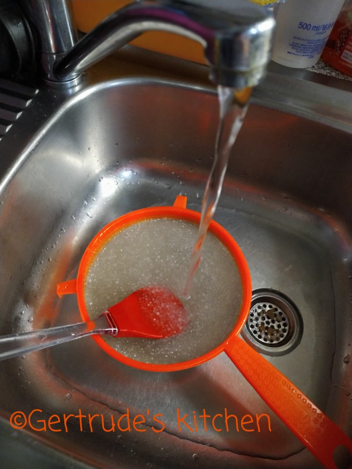 Apoi se strecoară cu o strecurătoare deasă și se clătește cu apă rece pentru ca să se răcească și boabele să rămână curate.