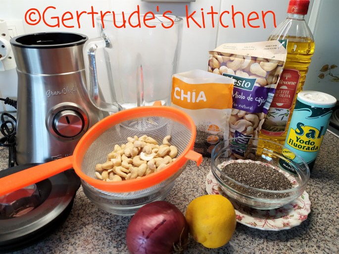 Se pun în cană de blender împreună cu uleiul, lămâia, apă și sarea. Se blendează bine. Va deveni un amestec asemănător cu o smântână fluidă.
