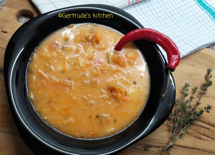 În rețeta originală ungurească se folosea afumătură de porc, se îngroșa cu rântaș și se punea o bună cantitate de smântână la urmă.