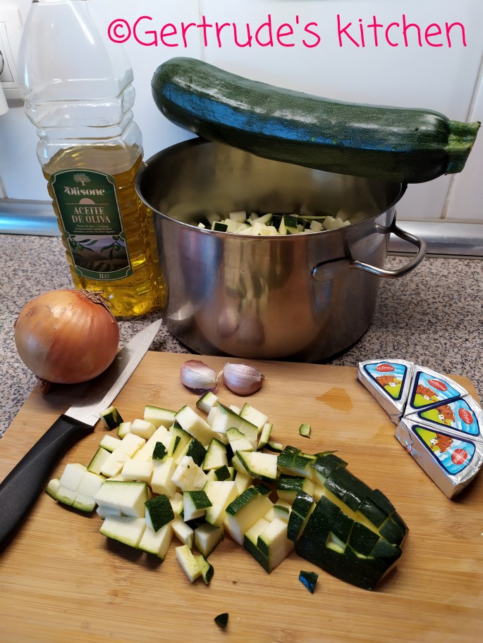 Se curăță și se taie cubulețe cartofii, ceapa și usturoiul. Dovleceii nu se curăță de coajă, ci se taie și ei cubulețe cu tot cu coajă.