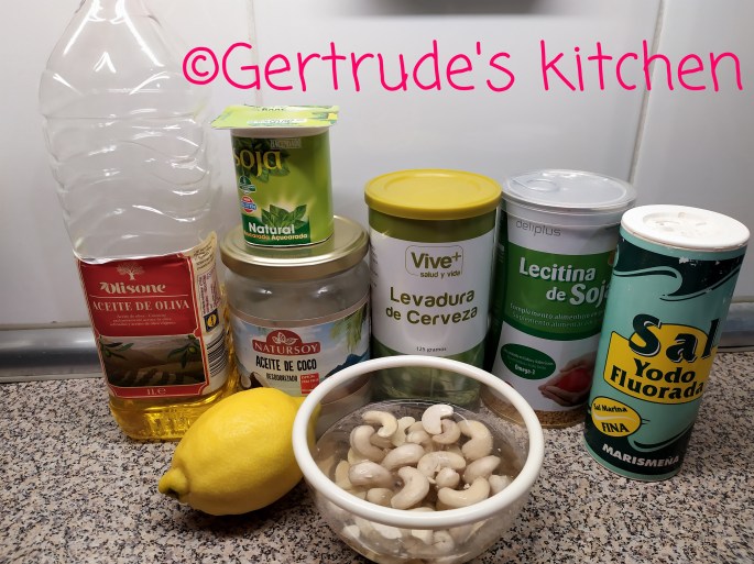 Se pun în cana de blender nucile de caju, iaurtul, sarea, drojdia inactivă, lecitina și sucul de lămâie. Se blendează bine astfel încât să se topească și granulele de lecitină iar nucile să devină o pastă cremoasă.