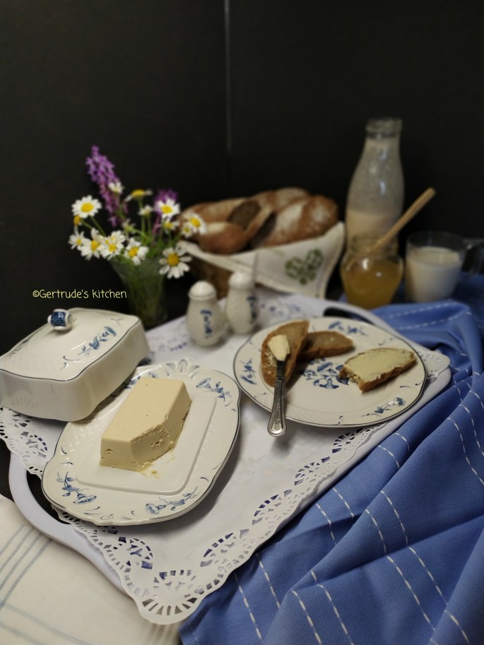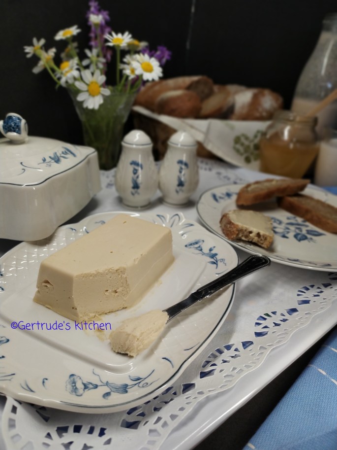 În continuare vă voi prezenta o variantă light a untului-margarină vegană. Acesta are un conținut mai mic de ulei de cocos, substituit de iaurt și nuci de caju. Acestea o fac să fie lejeră, spumoasă, cremoasă și ușor tartinabilă.