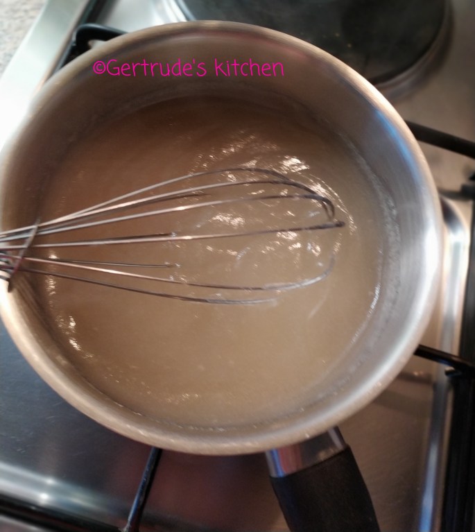 Separat se fierbe agar-agarul cu laptele 5-6 minute amestecând continuu , apoi se toarnă în blender peste cremă și se blendează câteva secunde. Toată compoziția se transferă în cratița în care s-a fiert agarul și se fierbe 5-6 minute amestecând continuu.