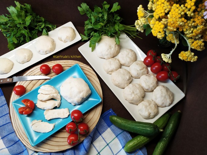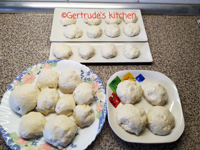 Din amestecul rezultat, se rupe câte o cantitate cât o nucă sau minge de ping-pong, și cu mâinile ușor umezite se dă forma de sferă. Apoi se așează pe o tavă.