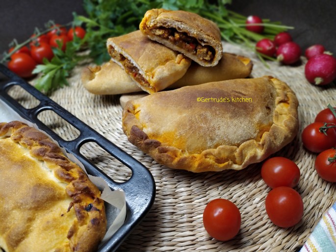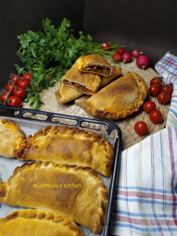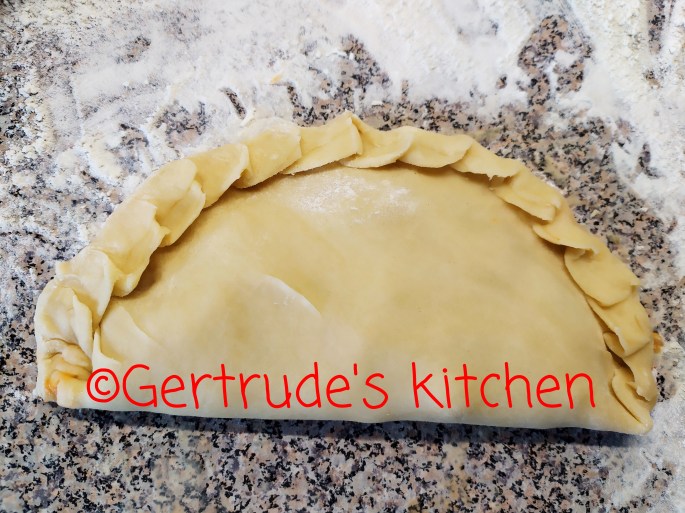 Se întinde un disc de aluat cu diametrul de 10-15 cm maxim, se pune umplutura la mijloc, se îndoaie în două, iar margine rotundă se închide prin prensionare cu furculița, sau o îndoire din aproape în aproape, ca o plisare.