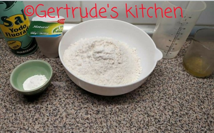 Se amestecă într-un bol cu lingura toate ingredientele afară de apă . Apoi se adaugă apa puțin câte puțin frământând aluatul. E posibil să nu fie nevoie de toată apa.