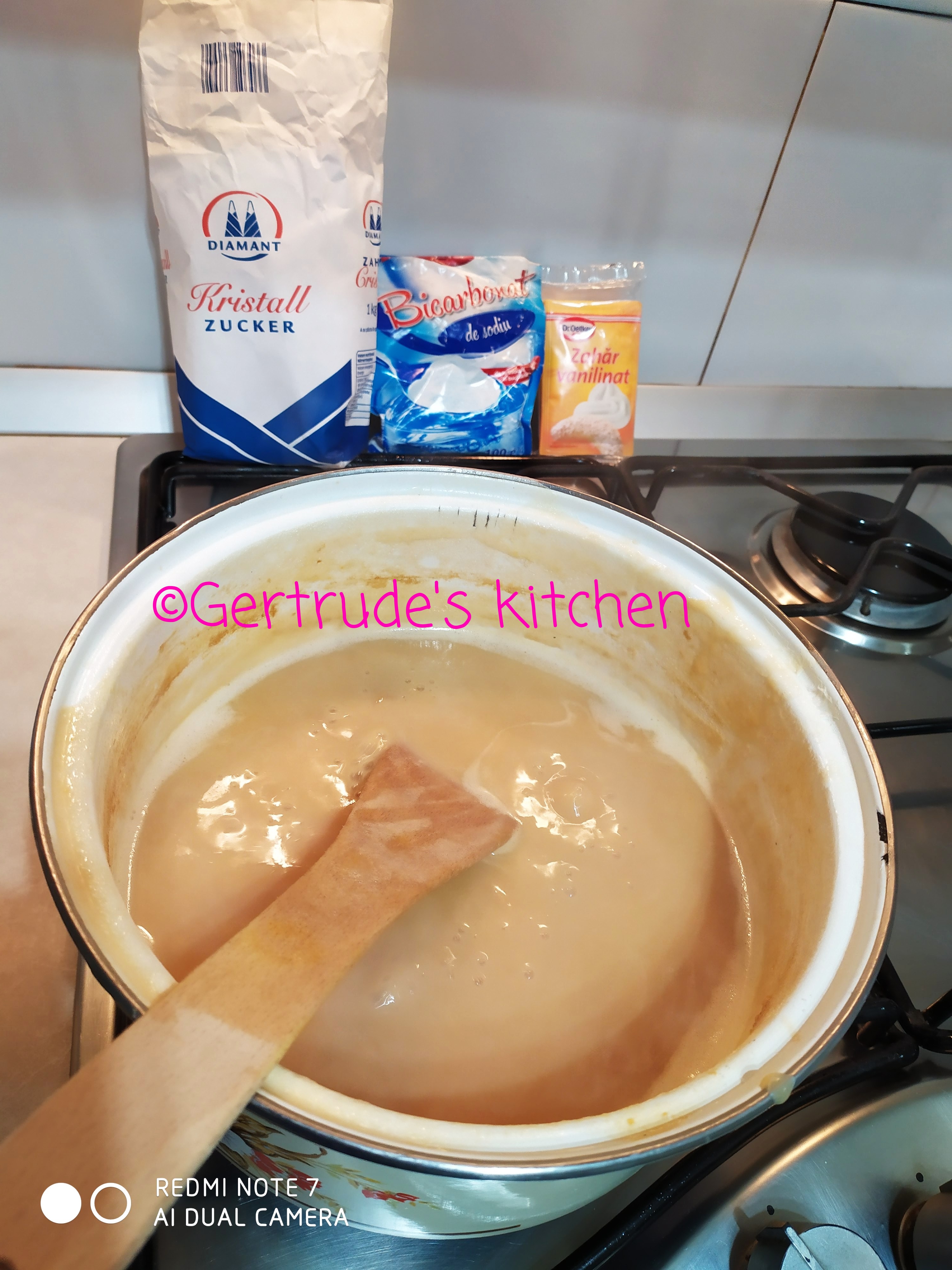 Așa va trebui să arate la final 😮 culoare brun – auriu. Dar mare atentie, dacă il lăsați mai mult, se va cristaliza la răcire.