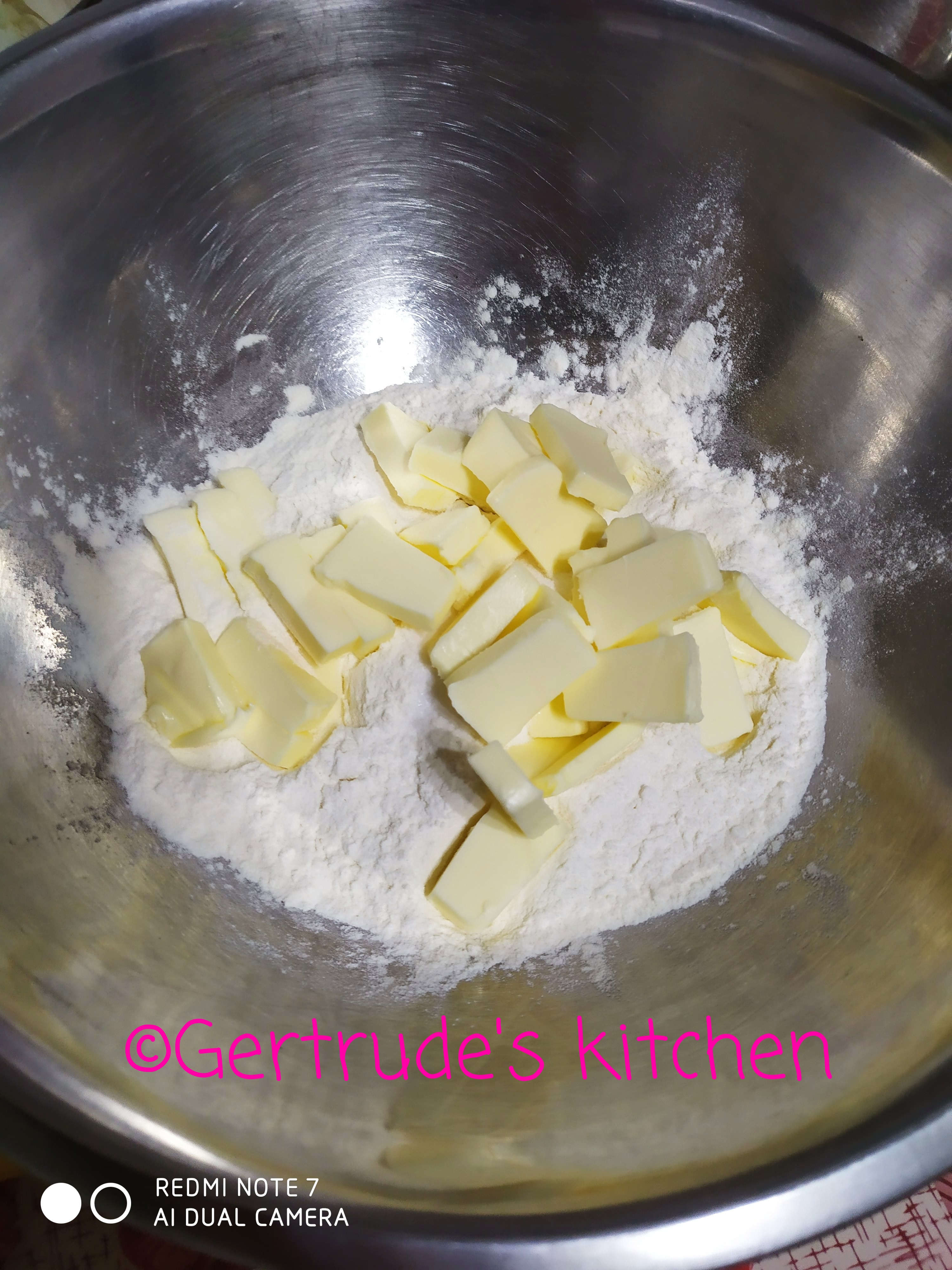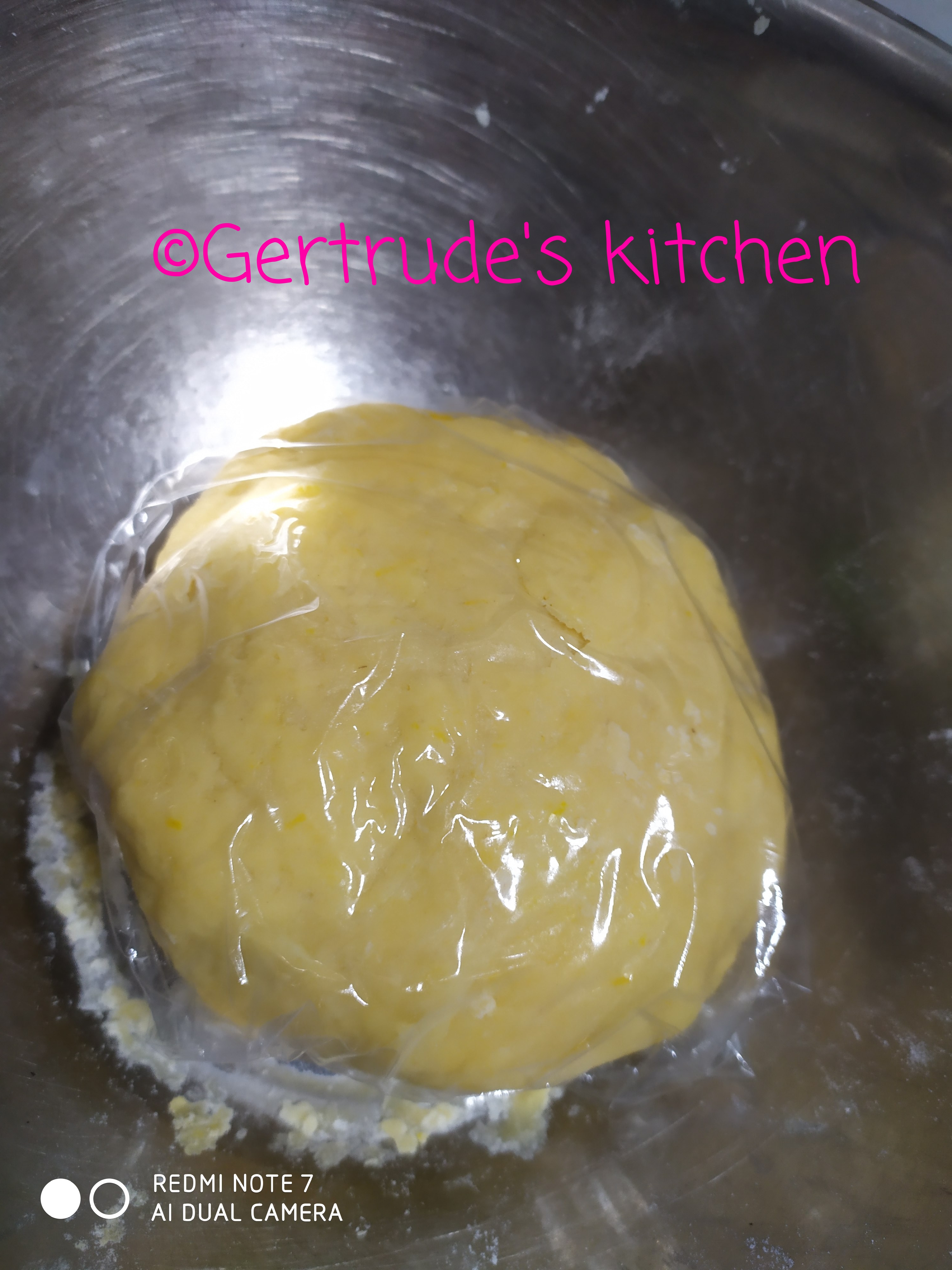 Se pune într-un vas făina cernută, sarea și zahărul vanilat. Apoi se adaugă untul rece tăiat bucățele. Se amestecă cu o furculiță până totul devine o masă nisipoasă. Se adaugă iaurtul si gălbenușurile și se amestecă mai departe cu furculița.E necesar ca masa să aibă cât mai puțin contact cu mâinile pentru a nu se încălzi. În final se frământă foarte puțin, doar atât cât să devină un aluat omogen. Apoi se învelește in folie alimentară și se dă la frigider pentru cel puțin o jumătate de oră.