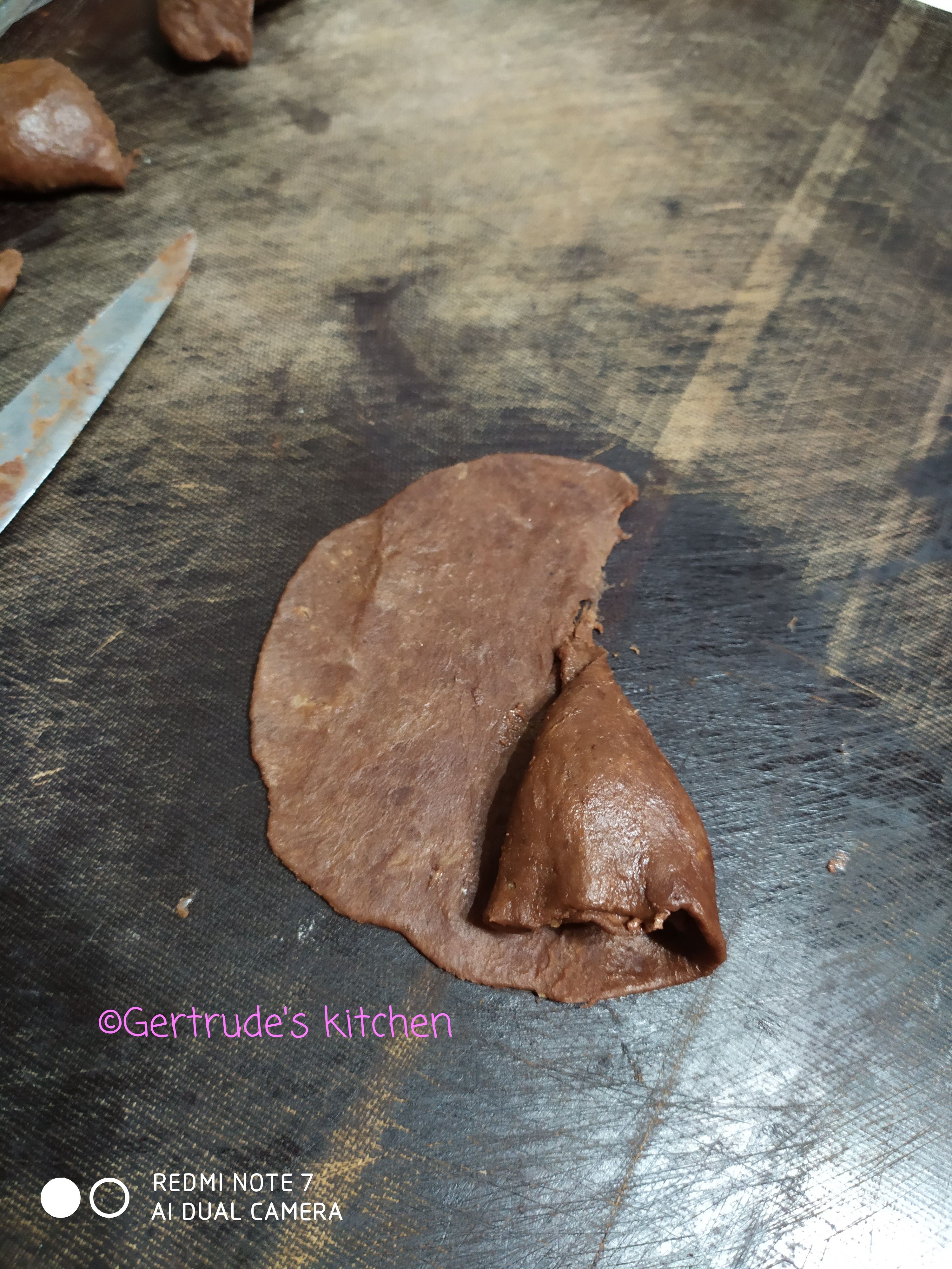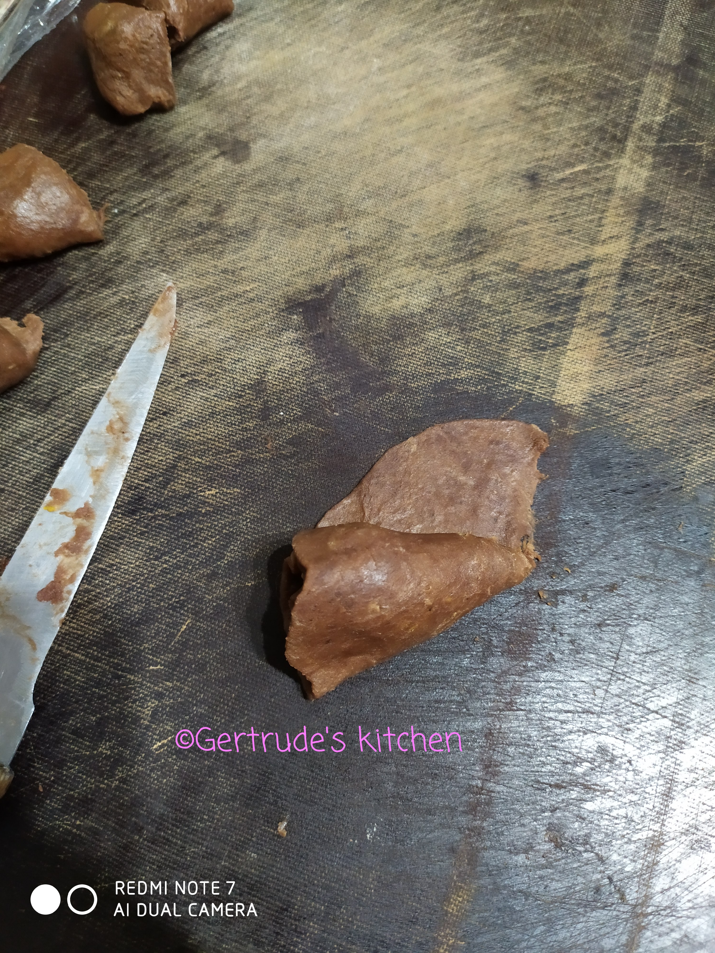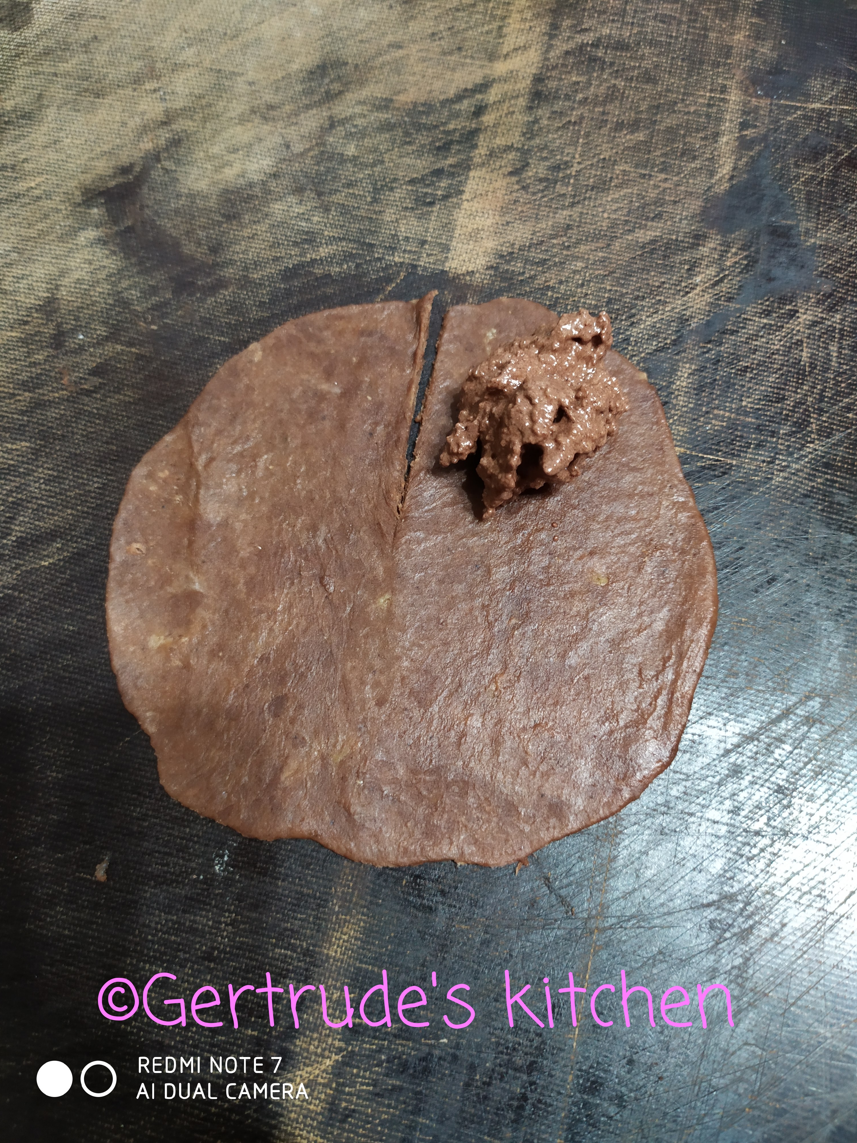 Se scoate aluatul din frigider și se modelează din el o bară groasă de 2 cm și se împarte în 48 de bucăți. Fiecare bucățică se întinde pe planșetă sub forma de disc cu diametrul de 8-10 cm. Discul se crestează de la mijloc spre margine o singură dată. Lângă tăietură se pune o linguriță de umplutură și se începe învelirea in aluat sub forma circulară, în sensul acelor de ceas. Partea lată se închide și aceasta va constitui baza fursecului, iar vârful format va fi în sus.