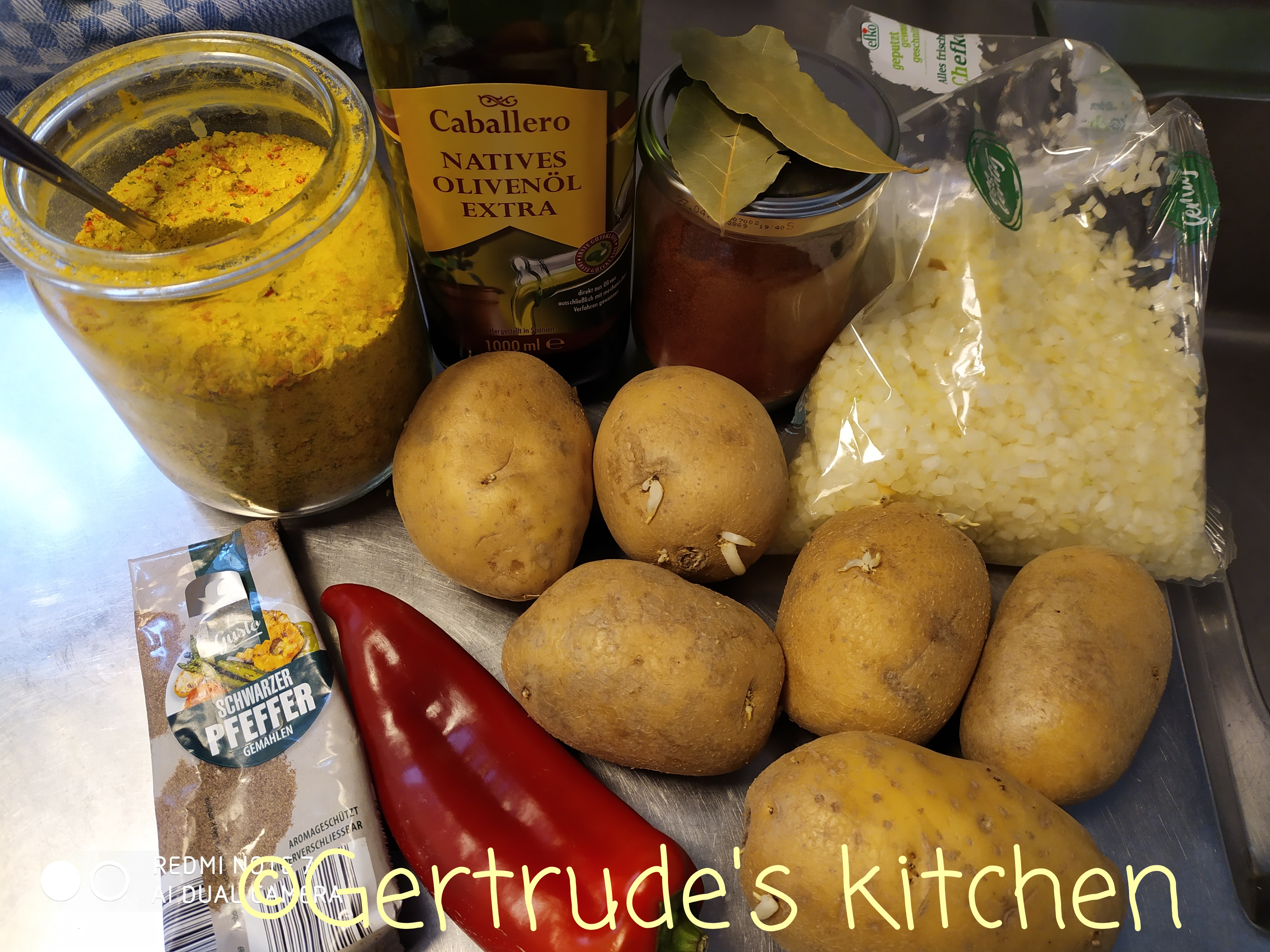 Cartofii se curăță și se taie în felii mari, ca să aibă aspect. Se pun la fiert și se adaugă apă cât să ii acopere. Se adaugă boiaua, frunzele de dafin și piperul.