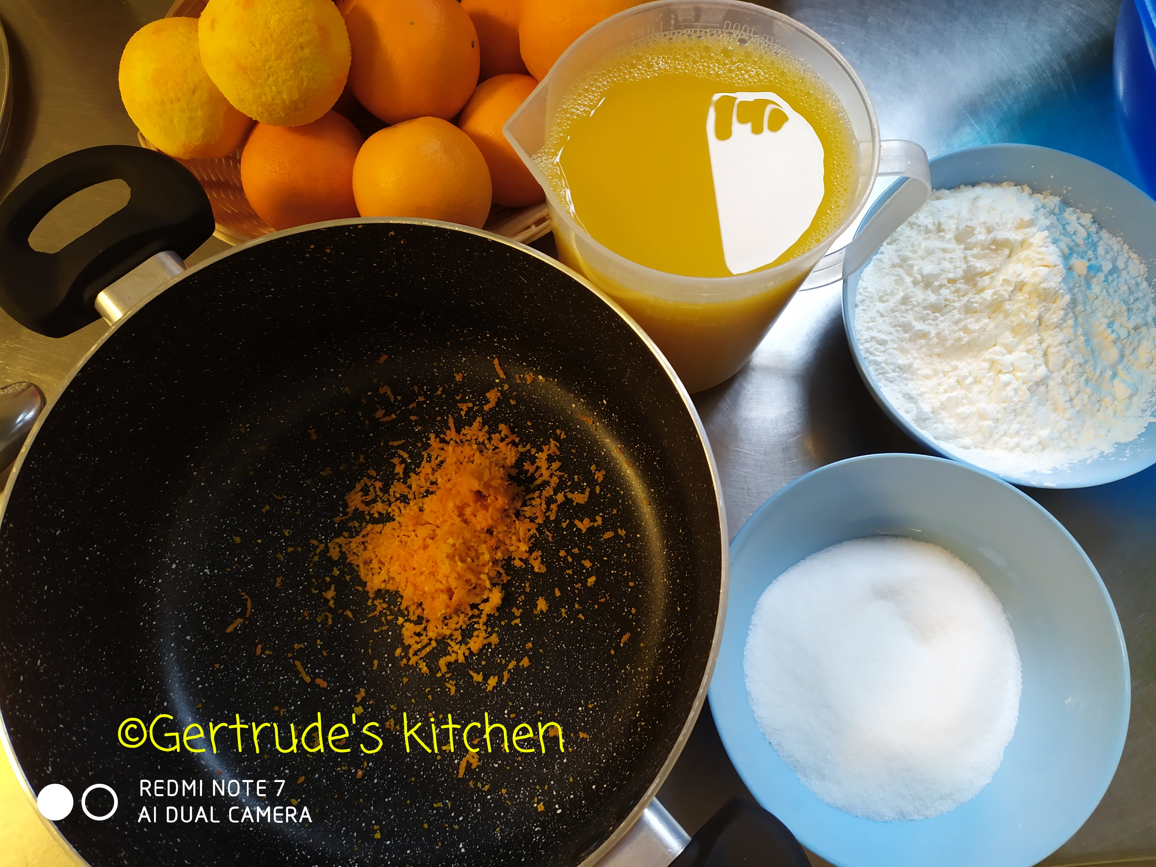 Se pune la fiert 2/3 din sucul de portocale împreună cu coaja rasă de la o portocală.