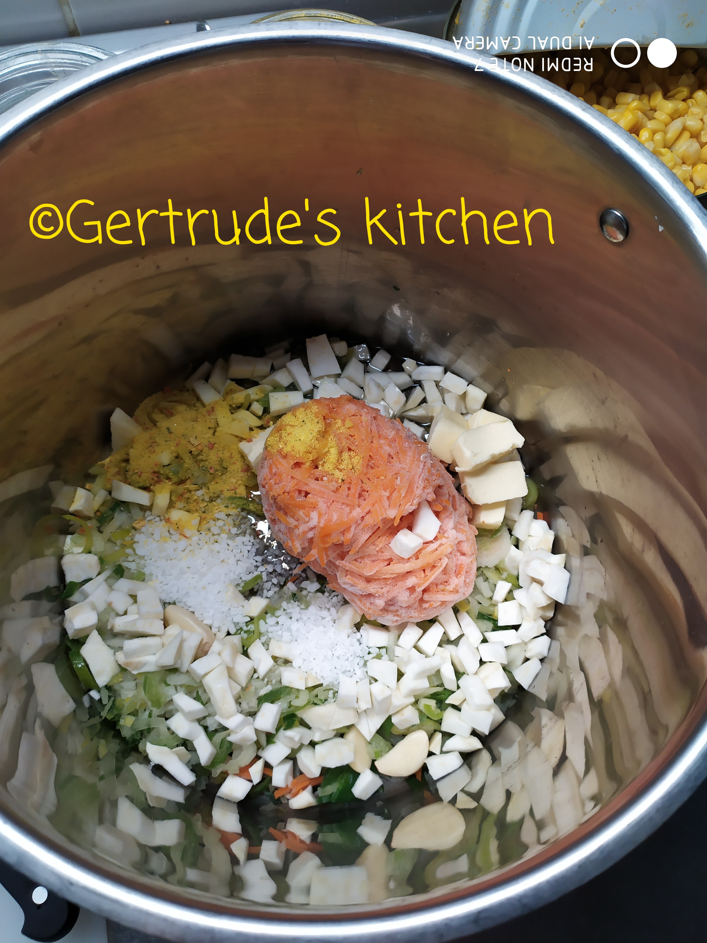 Toate legumele se curăță, se taie în bucăți mari și se pun la fiert împreună cu sare sau vegeta,ulei, unt și o cantitate de apă cât să la acopere.