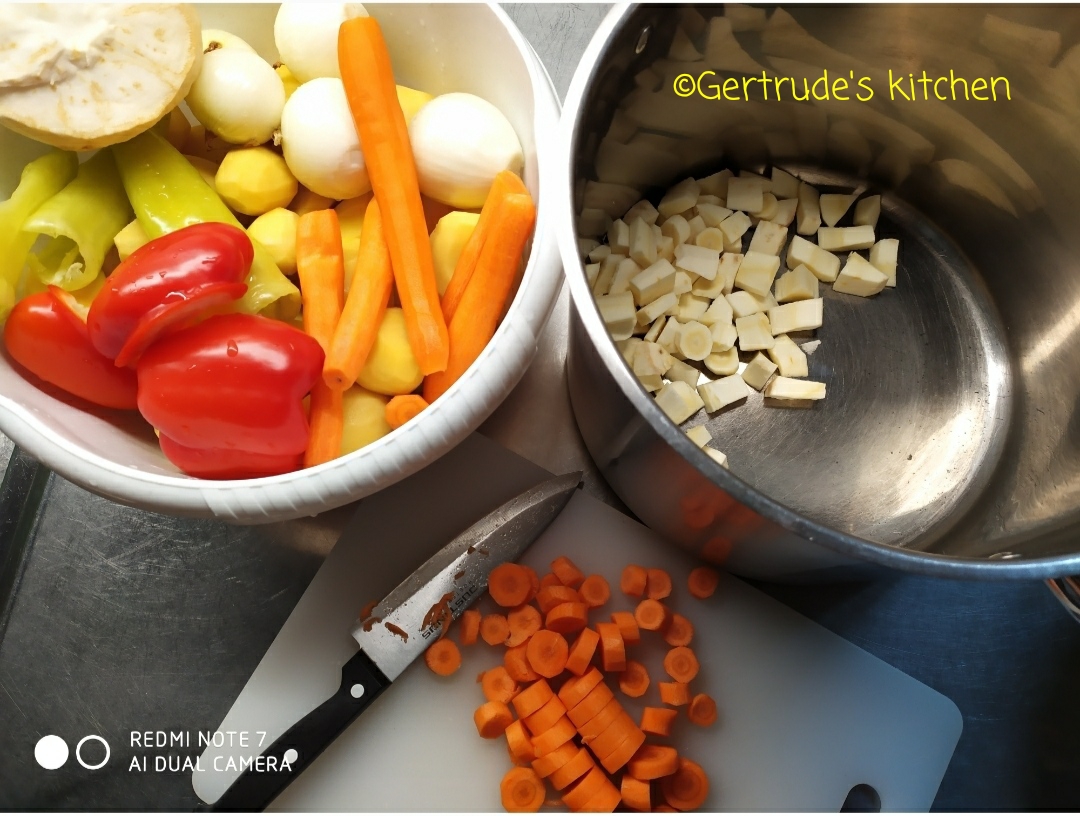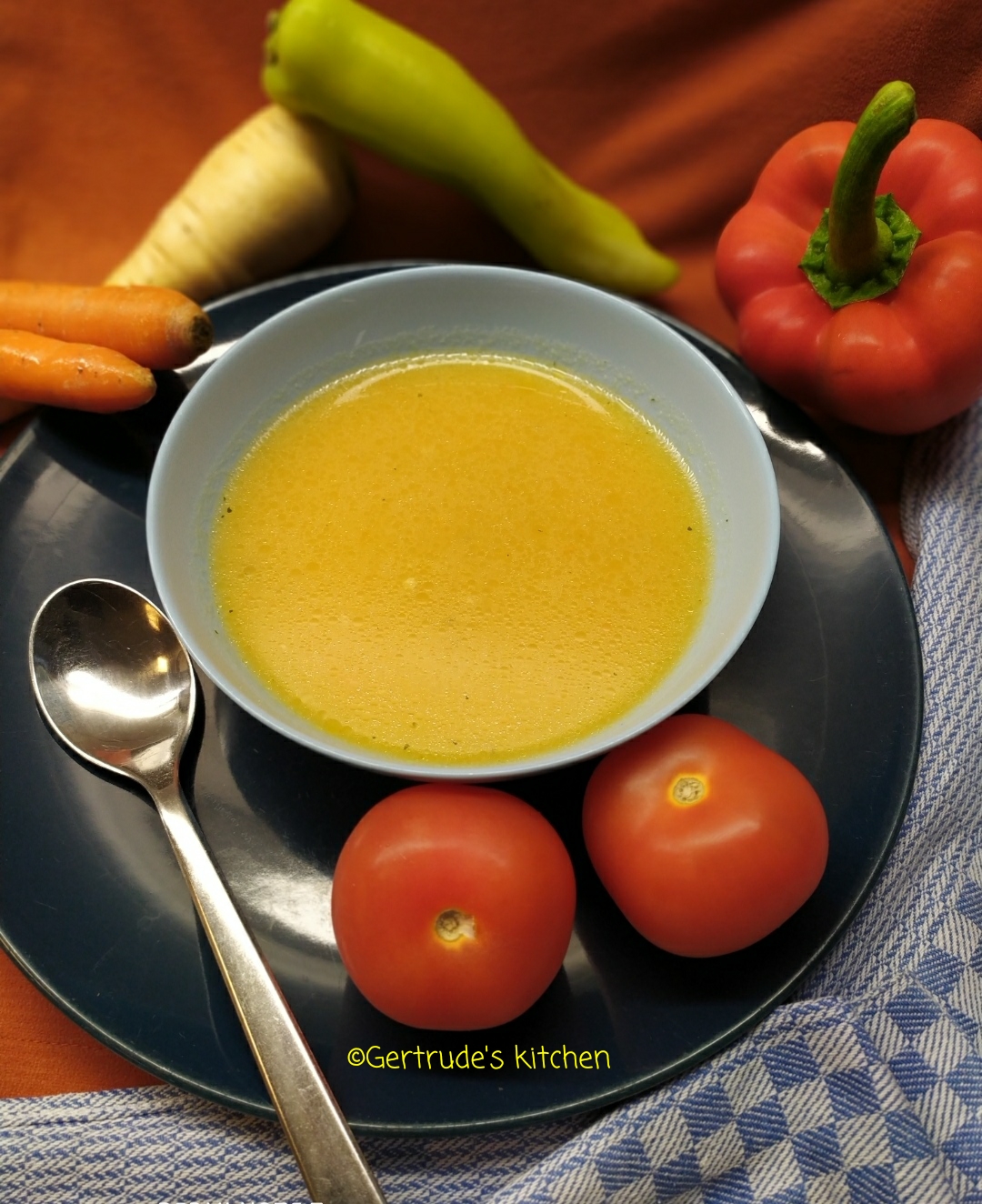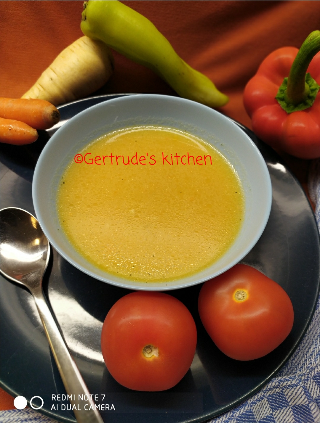 După ce s-au fiert, se blendează bine împreună, se adaugă untul și 4 litri de apă, sau în funcție de cât de groasa sau subțire se dorește.