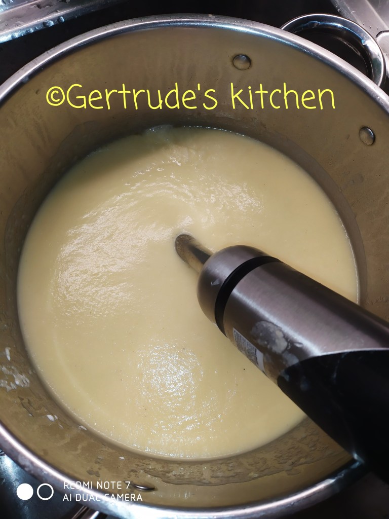 După ce s-au fiert, se adaugă smântână, piperul și nucșoara și se blendează bine.