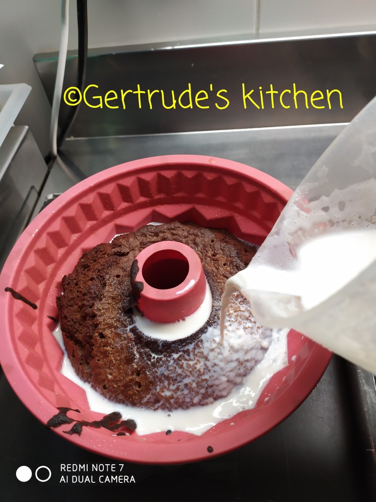 Poate fi lăsat simplu sau glazurat cu ciocolată sau 2 cești de budincă fierbinte (budincă preparată cu praf din plic, de orice aromă dorită ).după care se lasă la răcit.