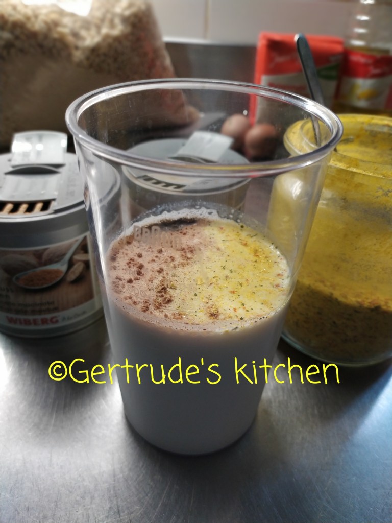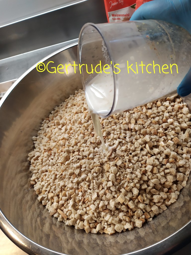 Nucșoara, sarea și piperul se dizolvă in lapte. Amestecul se încălzește bine și apoi se toarnă peste crutoanele de pâine. Se lasă 1/2 sau 3/4 oră să se înmoaie bine.