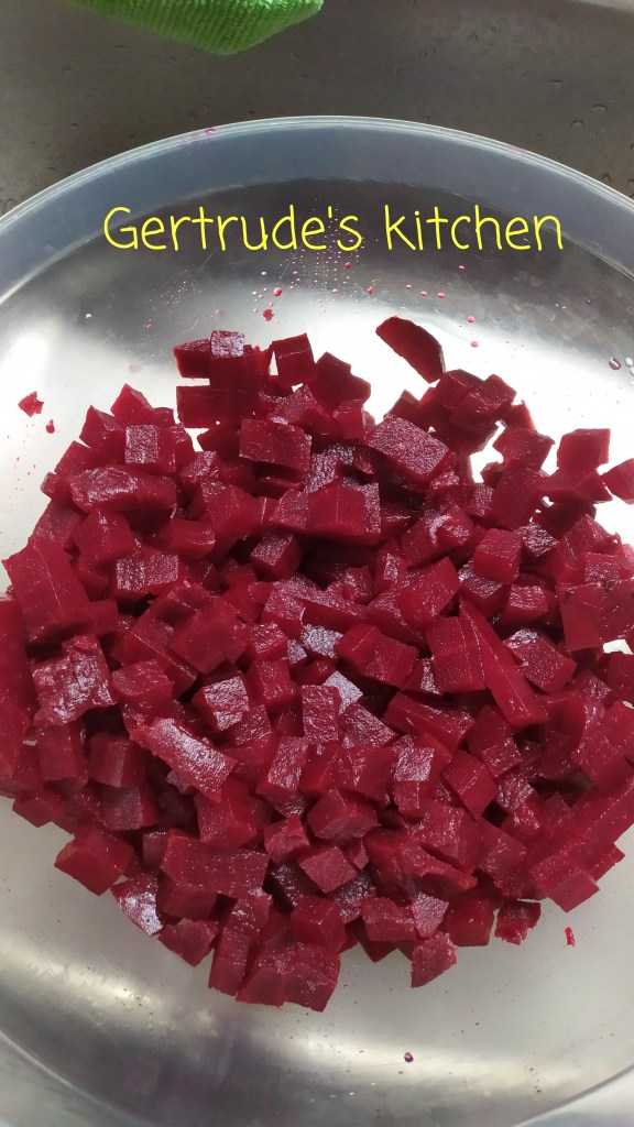 Cartofii se curăță și se taie în cubulețe mici. La fel și sfecla roșie. Se adaugă la ceapă și usturoiul călite anterior. Se toarnă din cantitatea totală de apă atât cât să cuprindă legumele și se pune oala la fiert.