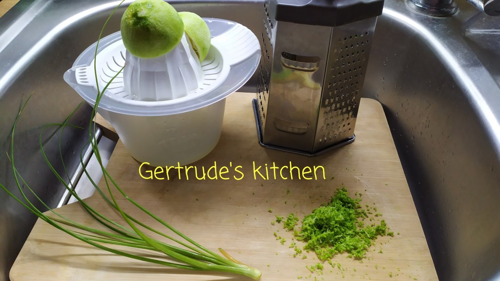 Apoi se adaugă în supă laptele de cocos ,restul de apă rămasă, sucul și coaja rasă de limeta și se mai dă un clocot.